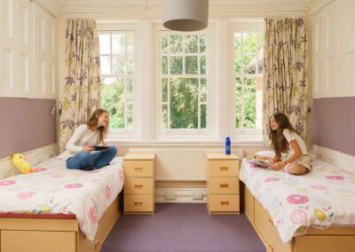 Bedrooms vary from singles to small dormitories in different houses and each house is supervised by a member of staff who help with problems at any time, day or night. Where possible older students are given single or twin rooms.